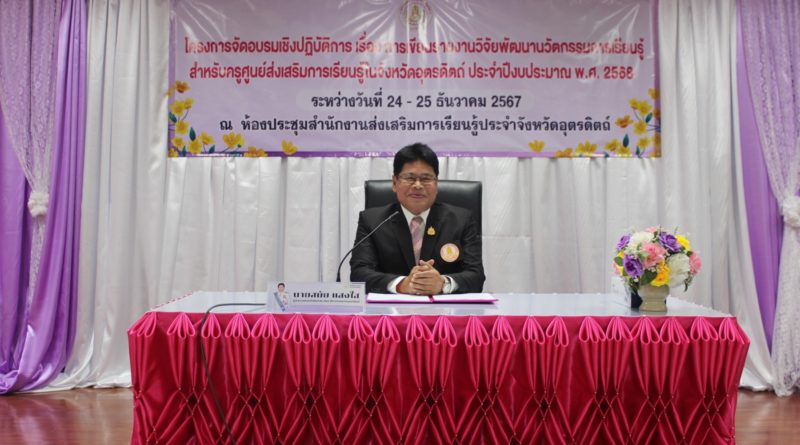 Read Moreวันที่ 24 ธันวาคม 2567 นายสมัย แสงใส ผู้อำนวยการ สำนักงาน สกร.ประจำจังหวัดอุตรดิตถ์ เป็นประธานพิธีเปิดโครงการอบรมเชิงปฏิบัติการ เรื่อง การเขียนรายงานวิจัยพัฒนานวัตกรรมการเรียนรู้สำหรับครูและบุคลากรศูนย์ส่งเสริมการเรียนรู้ในจังหวัดอุตรดิตถ์ ประจำปีงบประมาณ พ.ศ. 2568 ระหว่างวันที่ 24-25 ธันวาคม 2567 โดยมีนางพัทธนันท์