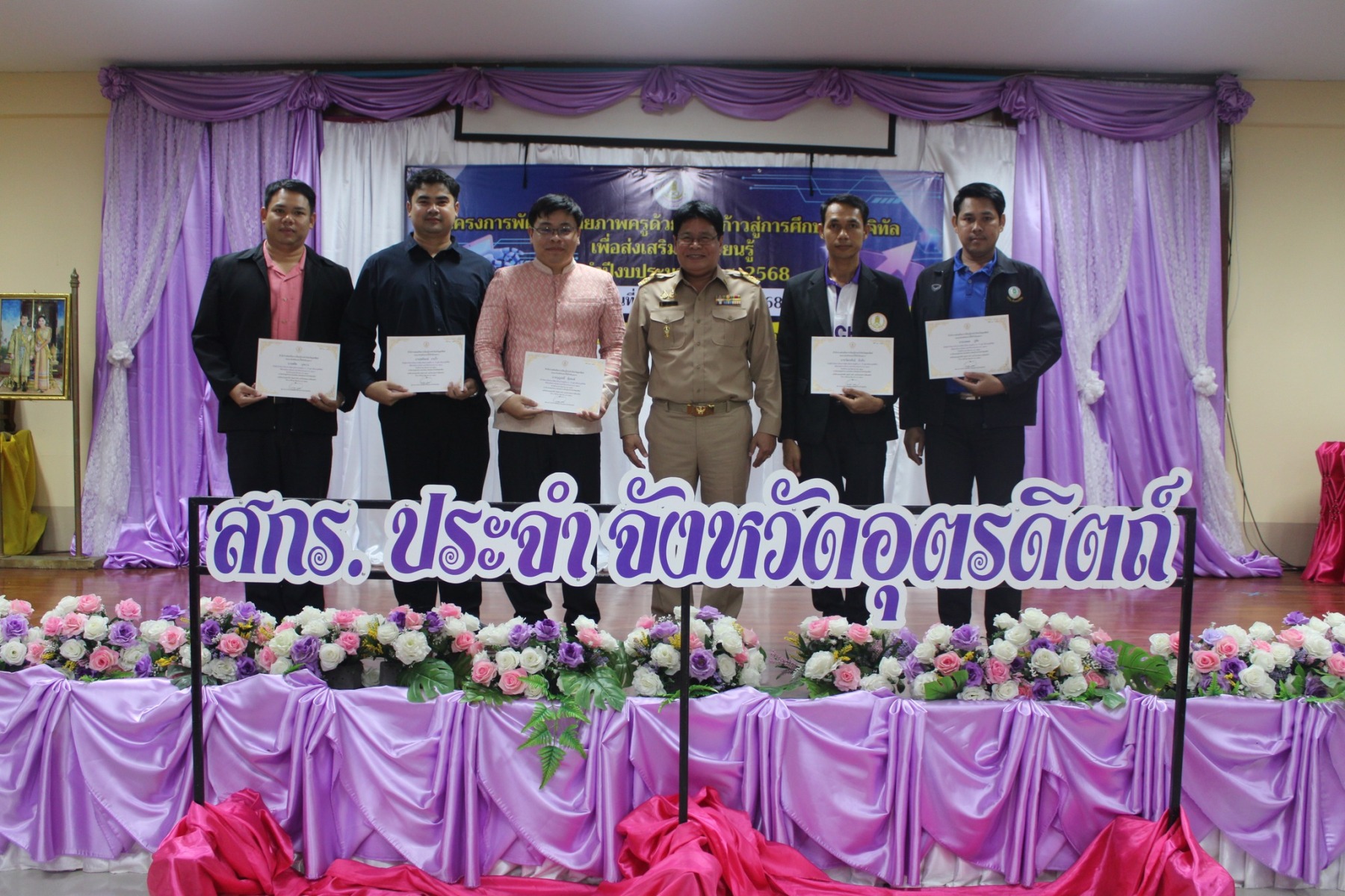 นายสมัย แสงใส ผู้อำนวยการ สำนักงาน สกร.ประจำจังหวัดอุตรดิตถ์ เป็นประธานพิธีเปิด โครงการพัฒนาศักยภาพครูด้วย AI : ก้าวสู่การศึกษายุคดิจิทัล เพื่อส่งเสริมการเรียนรู้ ประจำปีงบประมาณ พ.ศ. 2568 ระหว่างวันที่ 23-24 มิถุนายน 2568 โดยมีนางพัทธนันท์ ด่อนดี รองผู้อำนวยการ สำนักงาน สกร.ประจำจังหวัดอุตรดิตถ์ เป็นผู้กล่าวรายงานฯ และพิธีมอบวุฒิบัตรให้แก่ผู้ผ่านการอบรมฯ จำนวน 121 คน พร้อมให้โอวาทและกำลังใจแก่ผู้ปฏิบัติงาน ณ ห้องประชุมสำนักงาน สกร.ประจำจังหวัดอุตรดิตถ์ อำเภอเมืองอุตรดิตถ์ จังหวัดอุตรดิตถ์