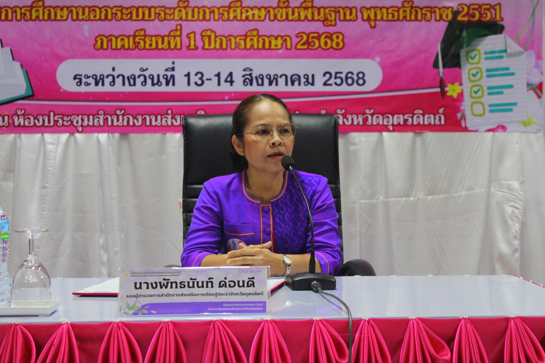 นายสมัย แสงใส ผู้อำนวยการสำนักงาน สกร.ประจำจังหวัดอุตรดิตถ์ มอบหมายให้นางพัทธนันท์ ด่อนดี รองผู้อำนวยการ สำนักงาน สกร.ประจำจังหวัดอุตรดิตถ์ เป็นประธานพิธีเปิดโครงการประชุมเชิงปฏิบัติการจัดทำข้อสอบรายวิชาเลือก หลักสูตรการศึกษานอกระบบระดับการศึกษาขั้นพื้นฐาน พุทธศักราช 2551 ภาคเรียนที่ 1 ปีการศึกษา 2568 โดยมีนายประหยัด จันทร์อ่อน หัวหน้ากลุ่มส่งเสริมการเรียนรู้เพื่อคุณวุฒิตามระดับ เป็นผู้กล่าวรายงาน ระหว่างวันที่ 13-14 สิงหาคม 2568 ณ ห้องประชุมสำนักงานส่งเสริมการเรียนรู้ประจำจังหวัดอุตรดิตถ์ เพื่อให้ครูและบุคลากร มีความรู้ ความเข้าใจ และทักษะในการสร้างแบบทดสอบปลายภาคเรียน และสถานศึกษา มีแบบทดสอบที่มีคุณภาพ เพื่อใช้ในการสอบวัดผลสัมฤทธิ์ปลายภาคเรียน ภาคเรียนที่ 1 ปีการศึกษา 2568 มีเป้าหมายผู้เข้าร่วมกิจกรรม ประกอบด้วยข้าราชการครู และครูศูนย์การเรียนรู้ จาก สกร.ระดับอำเภอทั้ง 9 แห่ง รวมทั้งสิ้น 27 คน